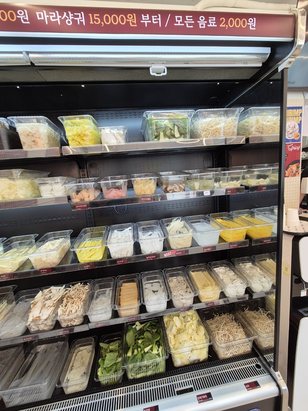 마라탕의 가격은 원하는 재료들을 볼에 담아 무게를 측정하여 금액을 측정하는 방식입니다.