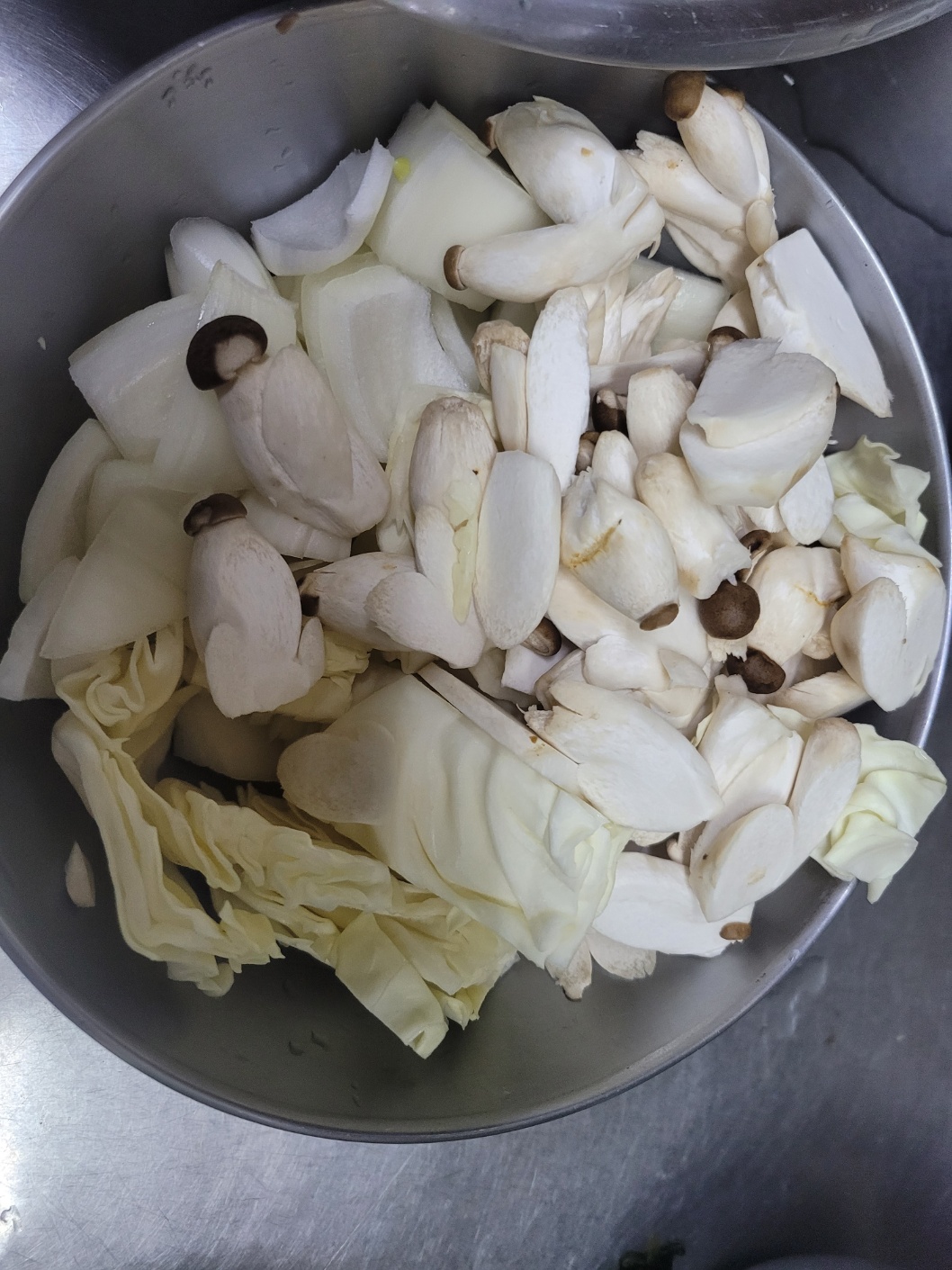 콩나물, 메추리알, 미니새송이(아무 버섯이나 상관 x), 양배추, 양파, 당면(가락국수사리, 라면사리 전부가능)