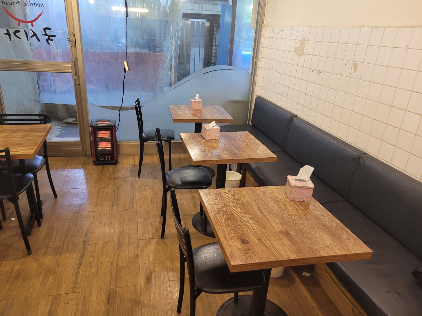 노부부 어르신 두 분이서 매장을 운영하시는데, 테이블은 5개 정도이고, 대략 수용인원은 10~15명 정도 됩니다.