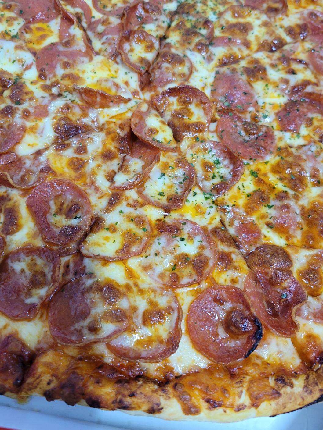 일단 페퍼로니 피자의 사진을 보면 토핑이 듬뿍 올려져 있는 걸 확인할 수 있었습니다 크으... 근본 페퍼로니