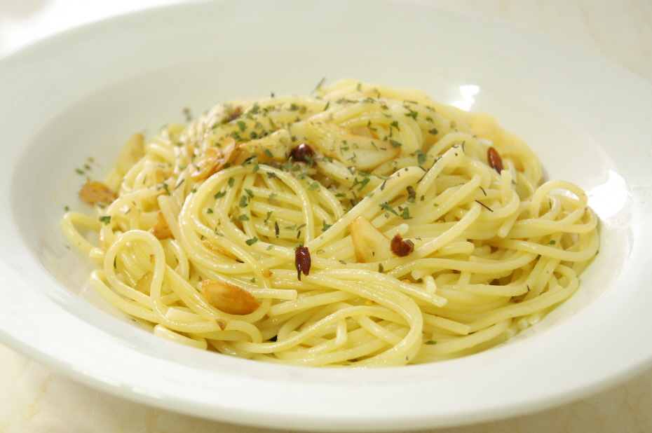 올리브유에 마늘의 진액을 고스란히 담아내고, 올리브기름의 풍미를 두른 파스타가 한국인 입맛에 안 맞을 리가 없지요 -_-