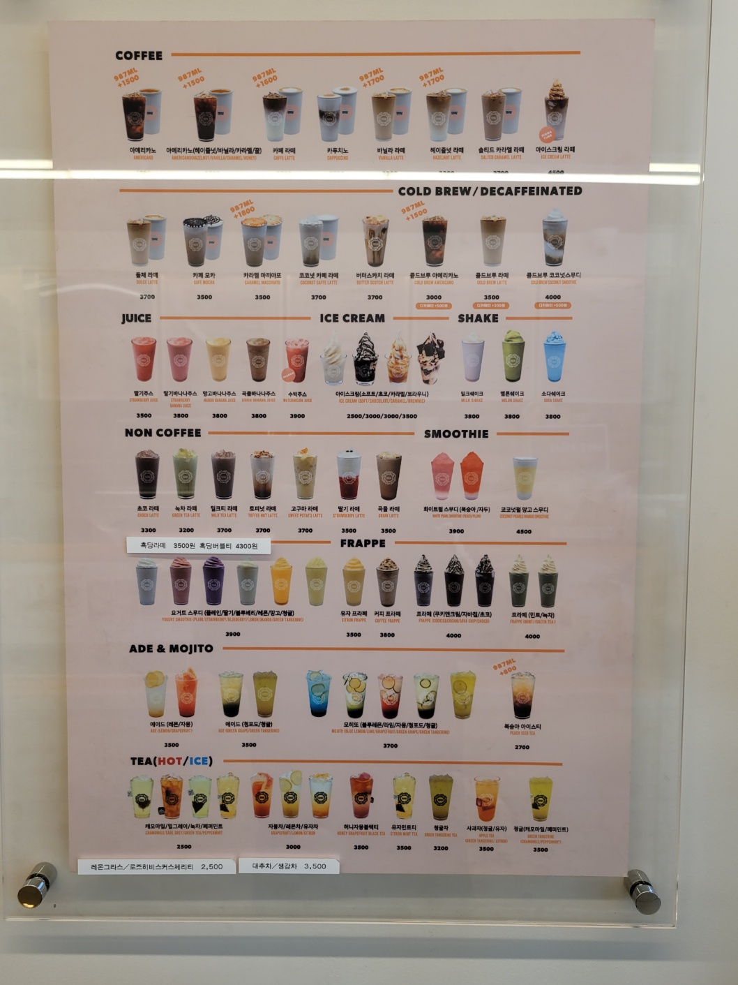 대부분의 가격이 다른 카페에 비해 저렴해서 4천 원이 넘는 메뉴가 몇 개 없었고, 양도 많아서 너무 흡족한 카페였습니다.