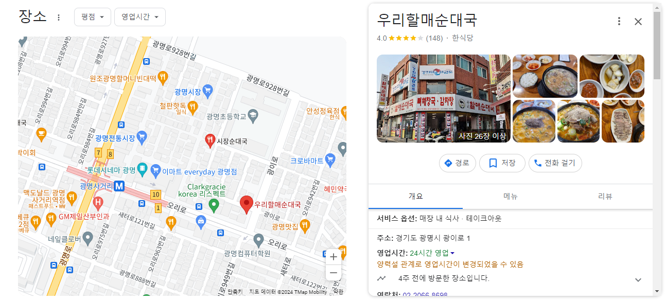 광명사거리 맛집 우리 할머니순댓국이었습니다.